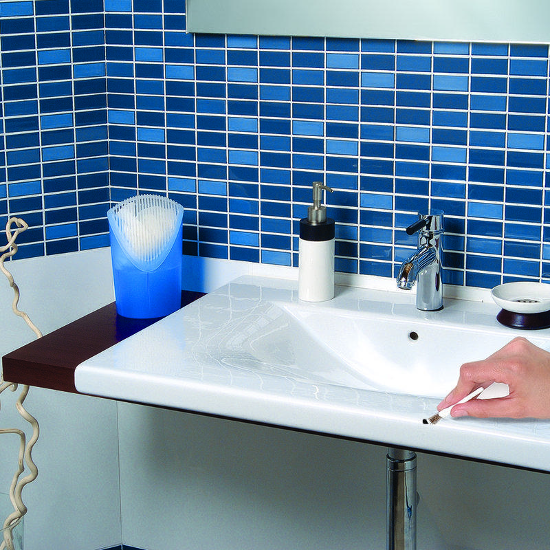 Opravuje oprýskání, popraskání a poškrábání na umyvadlech, vanách, sprchách, sanitárním zařízení, porcelánu, keramice, elektrospotřebičích, smaltovaných skříňkách a nádobí.