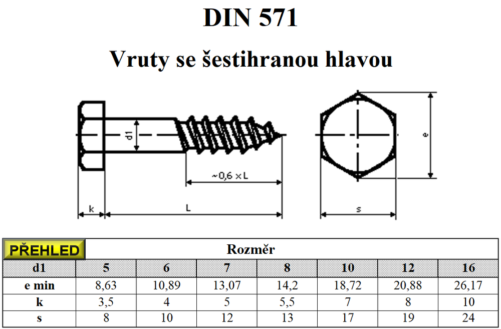 Parametry produktu Vrut do dřeva s šestihrannou hlavou