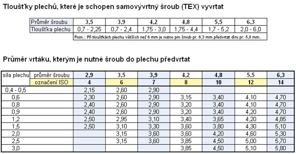 Vruty (šrouby) do ostatních materiálů (do plechu, sádrokartonu, do zdiva)