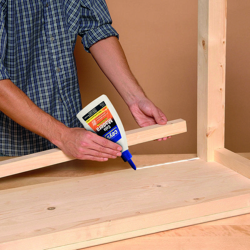 Pro kompletní slepení povrchu naneste lepidlo v dostatečném množství na čisté dřevo. Držte díly spojené po dobu 5 minut.