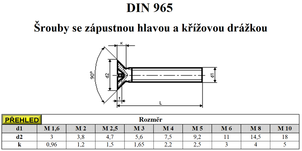 Šrouby se zápustnou hlavou DIN 965 se díky jednoduchému přístupu přes drážku Philips a metrickému závitu ideálně hodí pro šroubová spojení ve strojírenství.