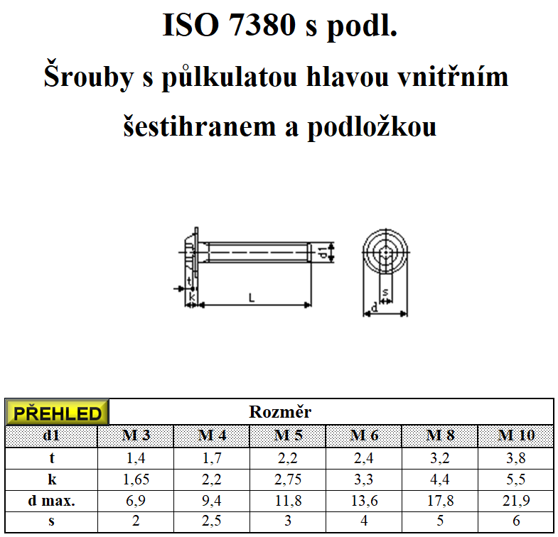 Parametry produktu Šroub s půlkulatou hlavou a límcem IMBUS 10.9 ČE